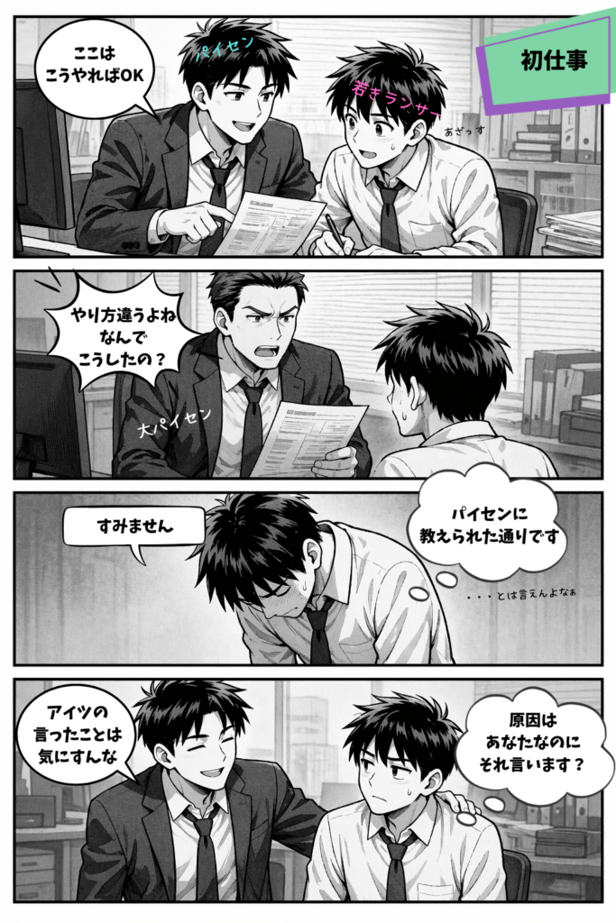 初仕事で右も左も分からないワイ、先輩のレクチャーで仕事して怒られるの巻き。