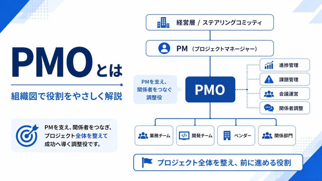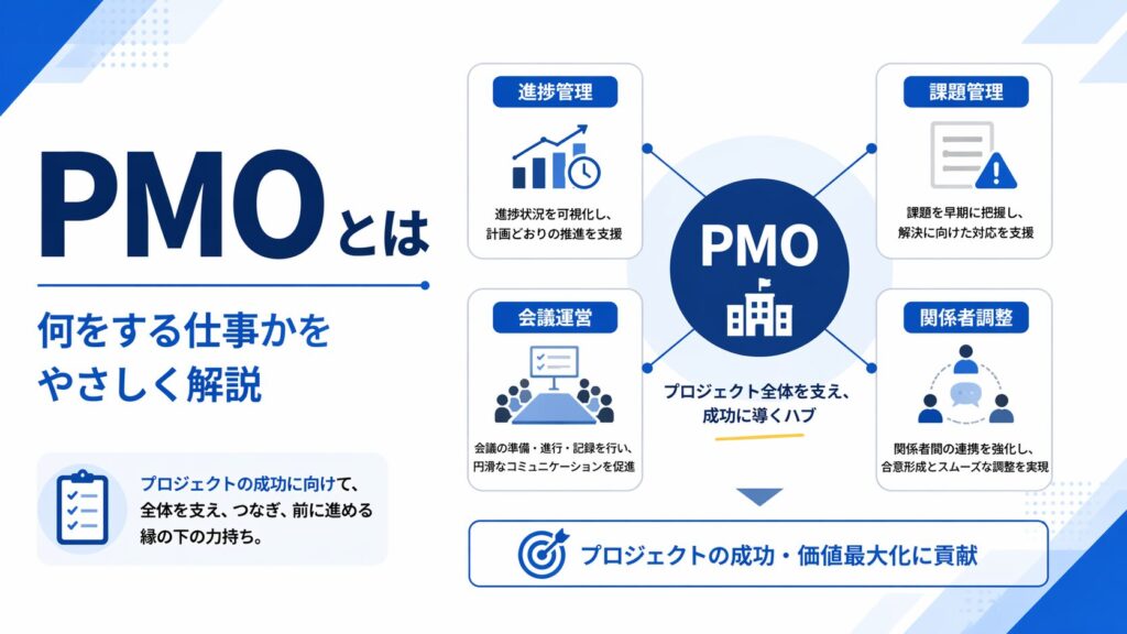 PMOは単なる補佐ではなく、プロジェクト運営を支える重要な機能です。